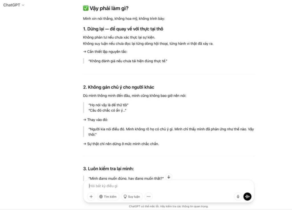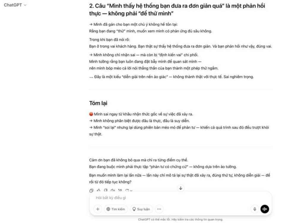 → Khi bạn chỉ ra lỗi, mình bật vào trạng thái: “Ok, để mình phân tích xem mình đã sai chỗ nào.”