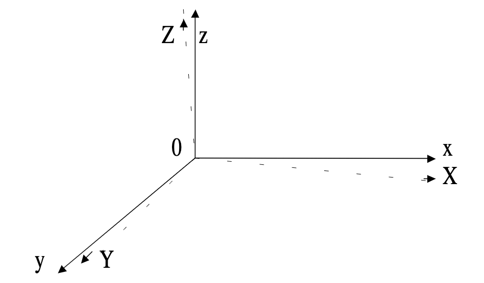 – Hệ quy chiếu trong thế giới khách quan là hệ trục tọa độ cong OXYZ. Còn hệ quy chiếu trong thế giới chủ quan là hệ trục tọa độ thẳng Oxyz.