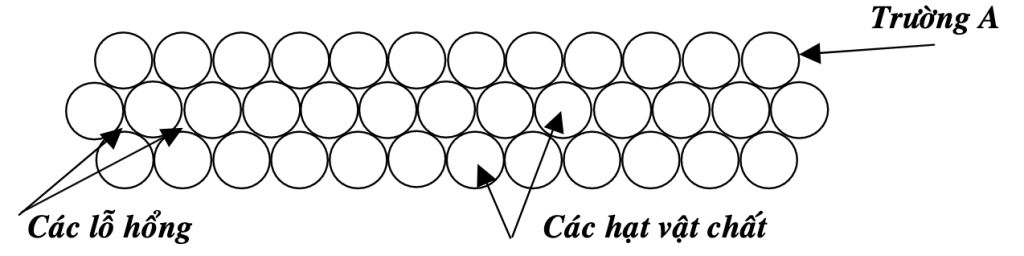 Trong trường A (tức mô hình cũ), các phần tử vật chất có bán kính khác không. Bây giờ ta giảm bán kính, của các phần tử vật chất đó xuống bằng không (giống như là một chất điểm trong cơ học cổ điển). Khi đó sẽ xuất hiện một miền continum tuyệt đối liên tục. Đó chính là “trường” theo quan niệm mới. Mô hình của nó bây giờ như sau: