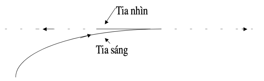 – Tia sáng truyền trong thế giới khách quan là những tia cong, còn tia nhìn trong thế giới chủ quan là những tia thẳng. Điều này dẫn tới một hệ quả là vị trí các ngôi sao mà ta nhìn thấy, sẽ không nằm trùng với vị trí của các ngôi sao thực trong thế giới khách quan.